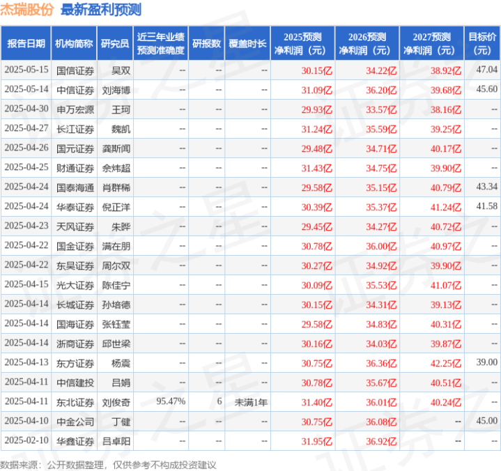 证券之星数据中心根据近三年发布的研报数据计算,东北证券刘俊奇研究员团队对该股研究较为深入,近三年预测准确度均值高达95.47%,其预测2025年度归属净利润为盈利31.4亿,根据现价换算的预测PE为11.48。